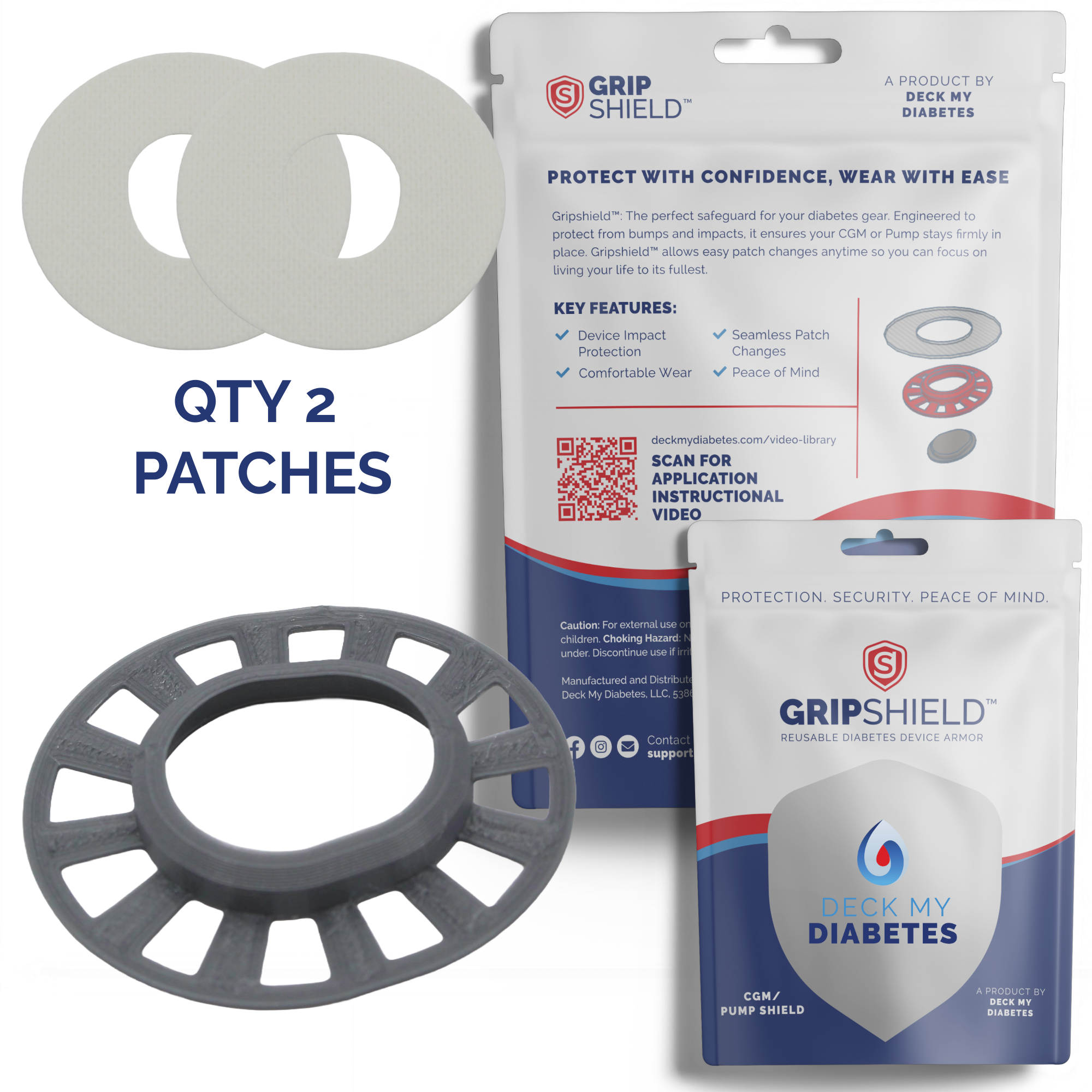 1. "Grip": hold your diabetes CGM/Pump firmly in place.