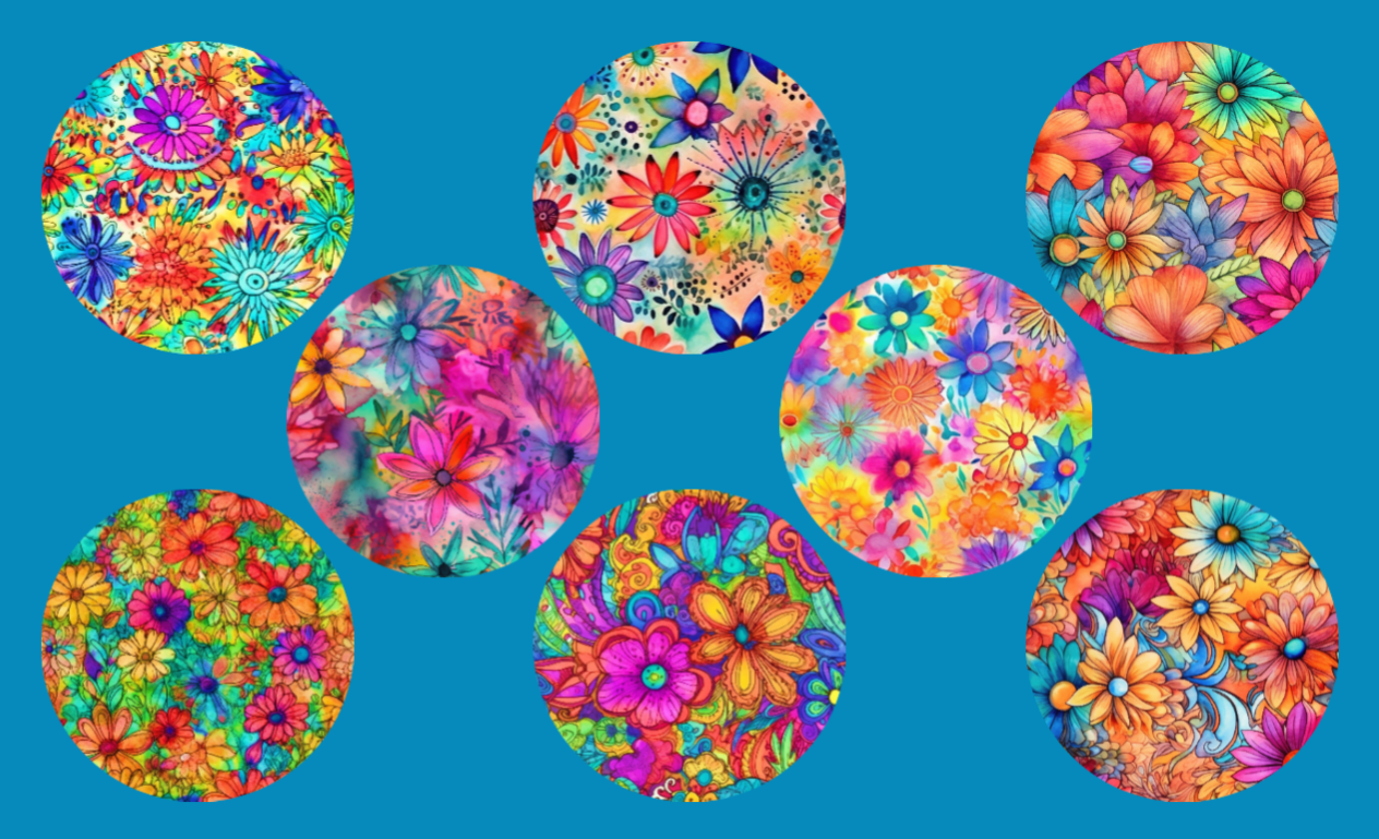 HIPPIE FLOWERS - 8 PATCH SET - LARGE SOLID OVERLAYS